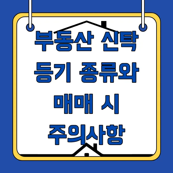부동산 거래, 특히 신탁 등기가 얽힌 경우에는 복잡하고 까다로운 법적 절차와 용어들이 등장해 일반인들이 어려움을 느끼기 쉽습니다. 오늘은 부동산 신탁 등기의 종류와 그 의미를 명확히 파악하고, 부동산 매매 시 주의해야 할 핵심 사항들을 짚어보겠습니다. 부동산 신탁, 제대로 알고 안전하게 거래하세요!