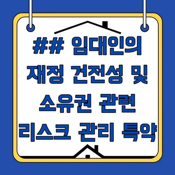 ## 임대인의 재정 건전성 및 소유권 관련 리스크 관리 특약